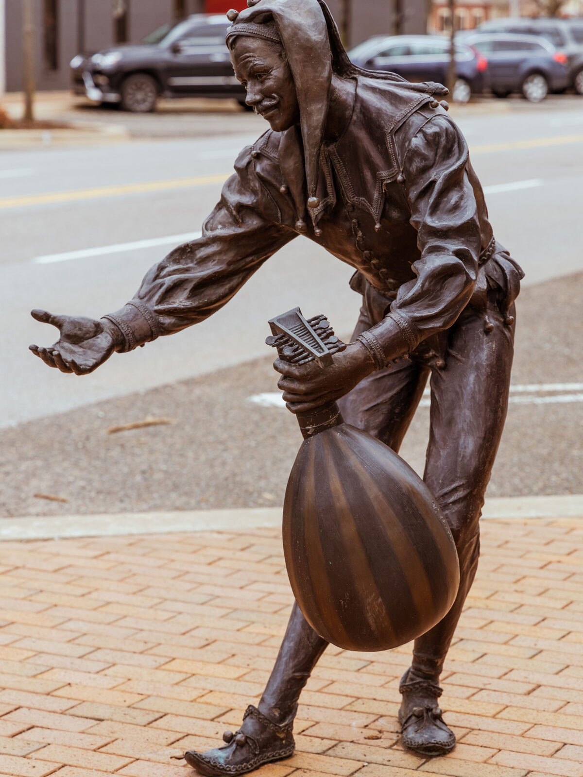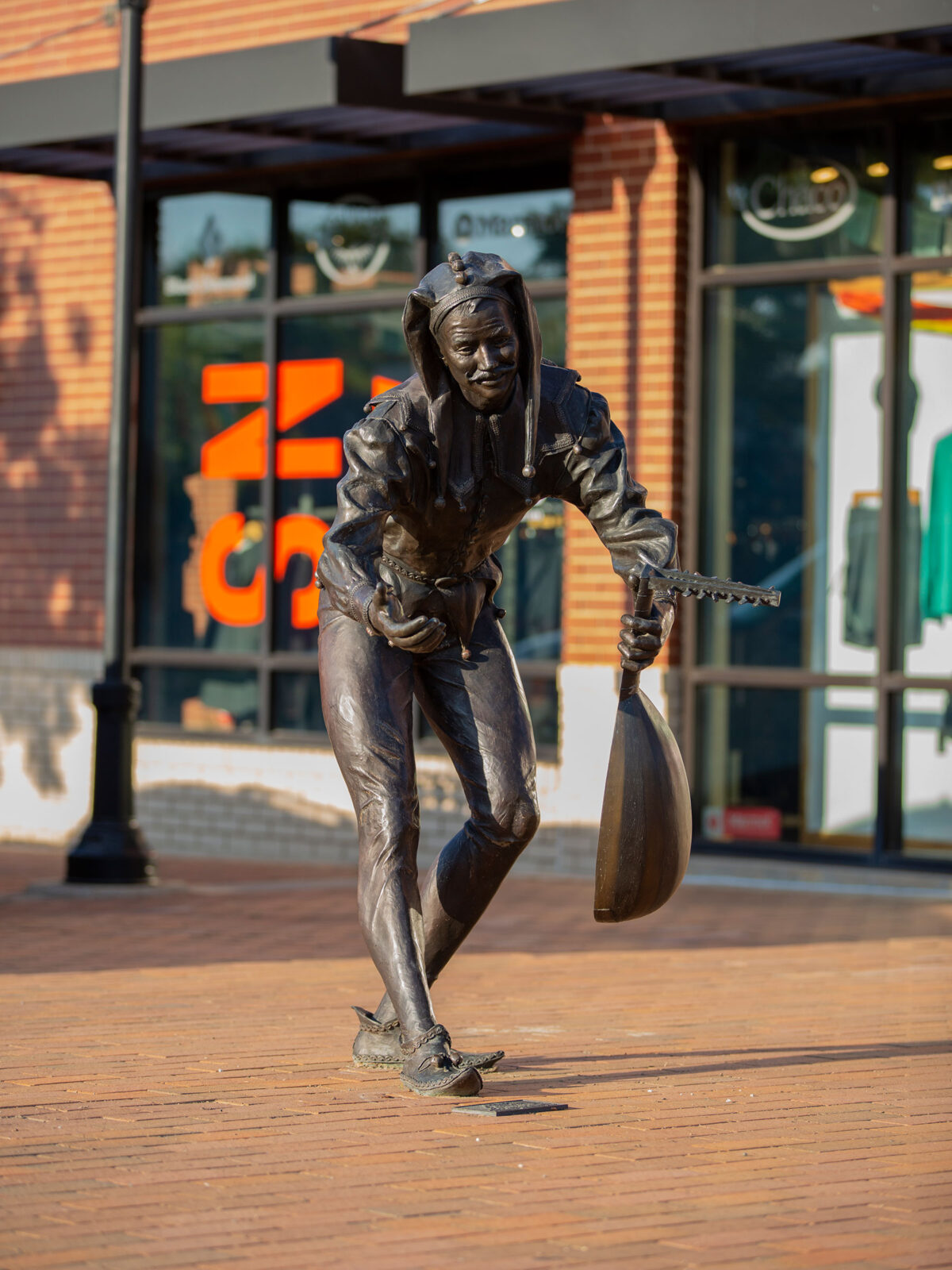 “Jester,” by Victor Issa, is one of our bronzes with a fantastic story. In 2007, the friends and family of the late Steve Gragg partnered with the Edmond Visual Arts Commission (EVAC) to purchase this piece. They wanted something that would commemorate Steve’s full and interesting life, and being quite the joker himself, “Jester” was the perfect way to represent him. Not only was he a jokester, but Steve was also a Shriner and a member of the Royal Order of Jesters. When this sculpture was finished, the friends and family of Steve Gragg were blown away by how much it captured his essence and coincidentally looked like him. “Jester,” just like Steve Gragg, has lived an interesting life. The statue was once struck by a car that ran off the roadway. If you look closely, you can see that the feet have shifted from their original position. Surprisingly enough, aside from a few minor scratches and dents, he’s in great condition. Unfortunately, the car was no match for “Jester” and was totaled in the crash. / Donation partners include Mo & Richard Anderson, W.E. & Joyce Ardrey, Kay Bickham, Ruth Boss, Rae Brown, Winnie Bushey, John & Vivian Dewar, C. Hubert Gragg, Debbie Gragg, Jonathan Gragg, Zach & Aubry Gragg, Carl & Mitzi Hancuff, James H. Harrod, Krista Jones & Greg Stinson, Mary Ann Karns, Susan Ruth Karns, Steve & Eliabeth Kerr, Dale & Beth McCoy, Frank Naifeh & Saundra Gragg Naifeh, Teresa Nicoll, Pat & Gayle Patterson, Carl & Gloria Reherman, Bill & Paula Sanford, Charles & Geneva Sarratt, Randel & Dana Shadid, Vance Shires, Amanda & Rick Smith, Charles Sughru & Lour Harris, Rick & Amanda Gragg Smith, Tatro Family: (Bernell & Rosemary, Greg & Kay, Tyler, Tricia), Joseph & Elizabeth Waner, and Gordon Wynn, and Women in Leadership.