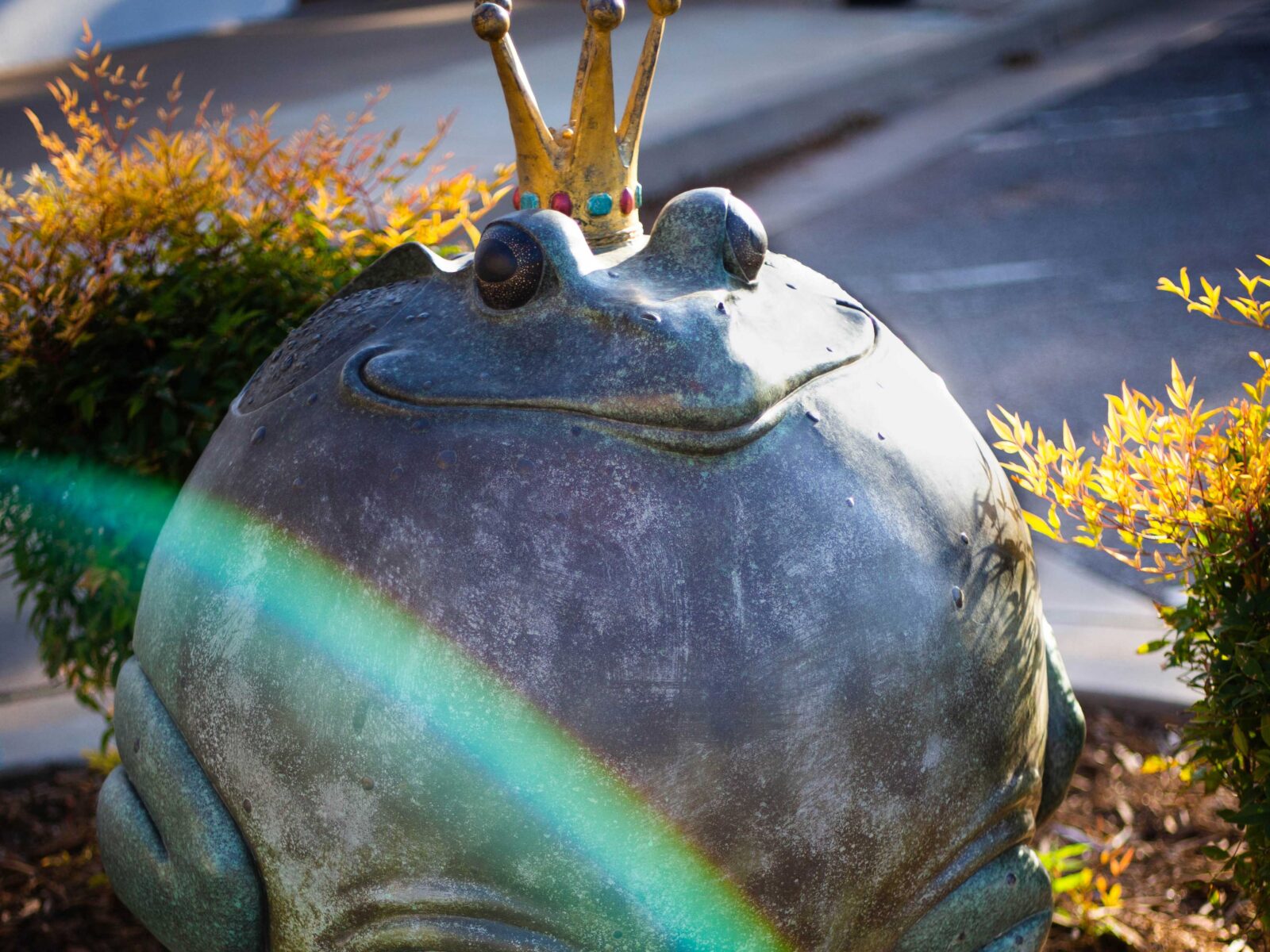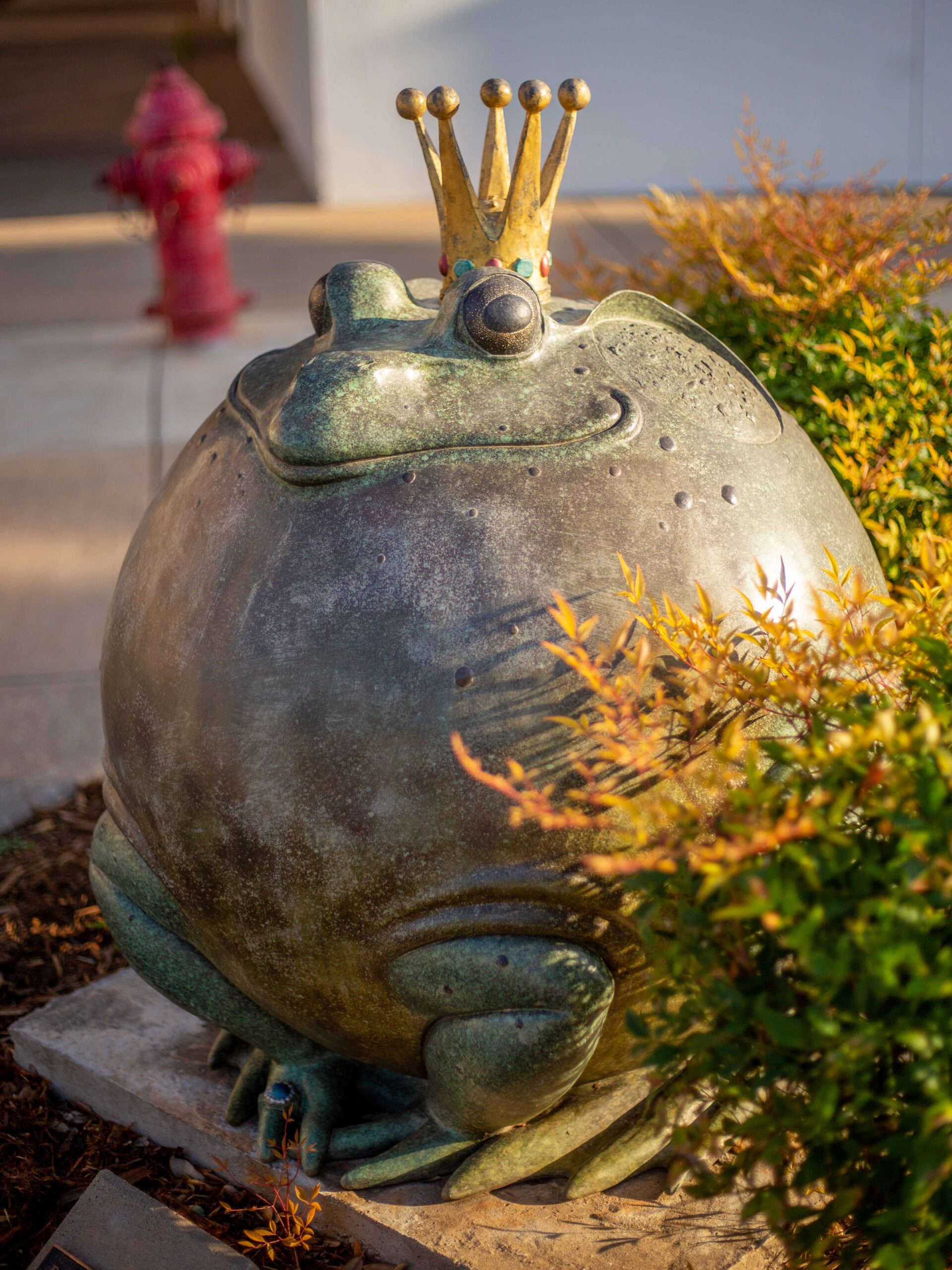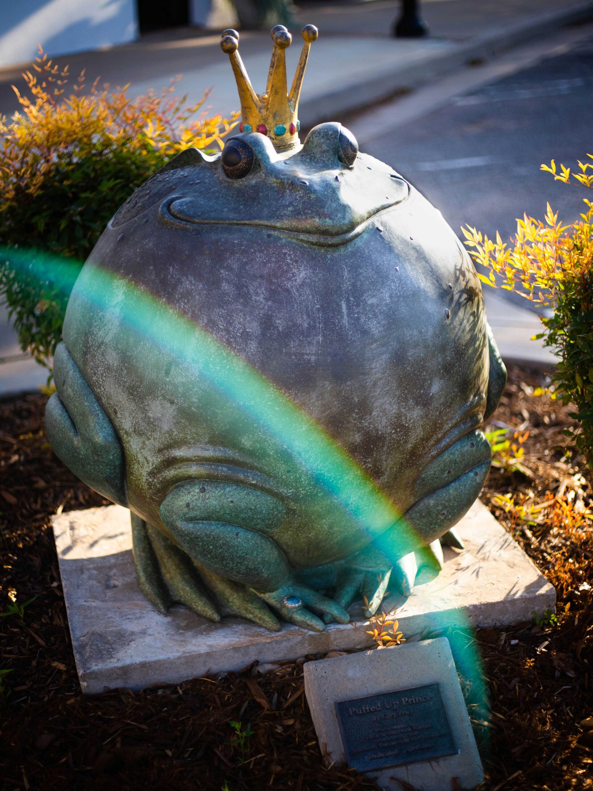 “Puffed Up Prince,” by Gary Lee Price, is a whimsical piece that strays away from his usual style. Most of the time, Price tries to capture the essence of children in the midst of their childhood, but every once in a while, he likes to take a break from tradition and do something different. This piece in particular was inspired by a frog that just so happened to come into Price’s studio while he was working on a different piece. From there, he got the idea for “Puffed Up Prince,” and says that the sole purpose of this sculpture is to delight you. This sculpture was brought to Edmond in 2005 and was Purchased through the Edmond Visual Arts Commission (EVAC) with a private donor/public matching fund program called Art in Public Places. The donors were Saundra and Frank Naifeh. Saundra Naifeh partnered on the piece while serving as mayor (2001-2007.) Saundra was a champion for the public art ordinances during her time as mayor. She remains an advocate of public art and a dedicated community leader today.